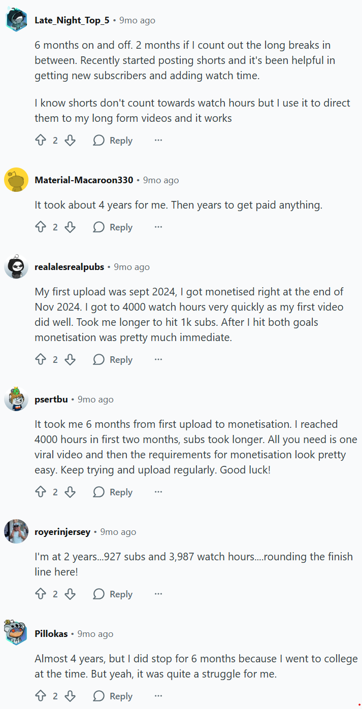 When asked how long it took to get monetized on YouTube, answers from Reddit users range anywhere from 6 months up to 4 years.