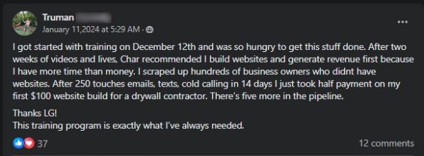 Here is one of the students from my private group talking about how they are making over $5K/month in passive income from the local lead generation business model.