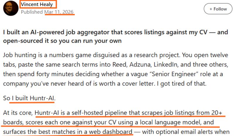 About 4 months after writing the review, Vincent published an AI-powered job aggregator tool. Following apps he launched include a YouTube channel analyzer and an eBay listing agent.